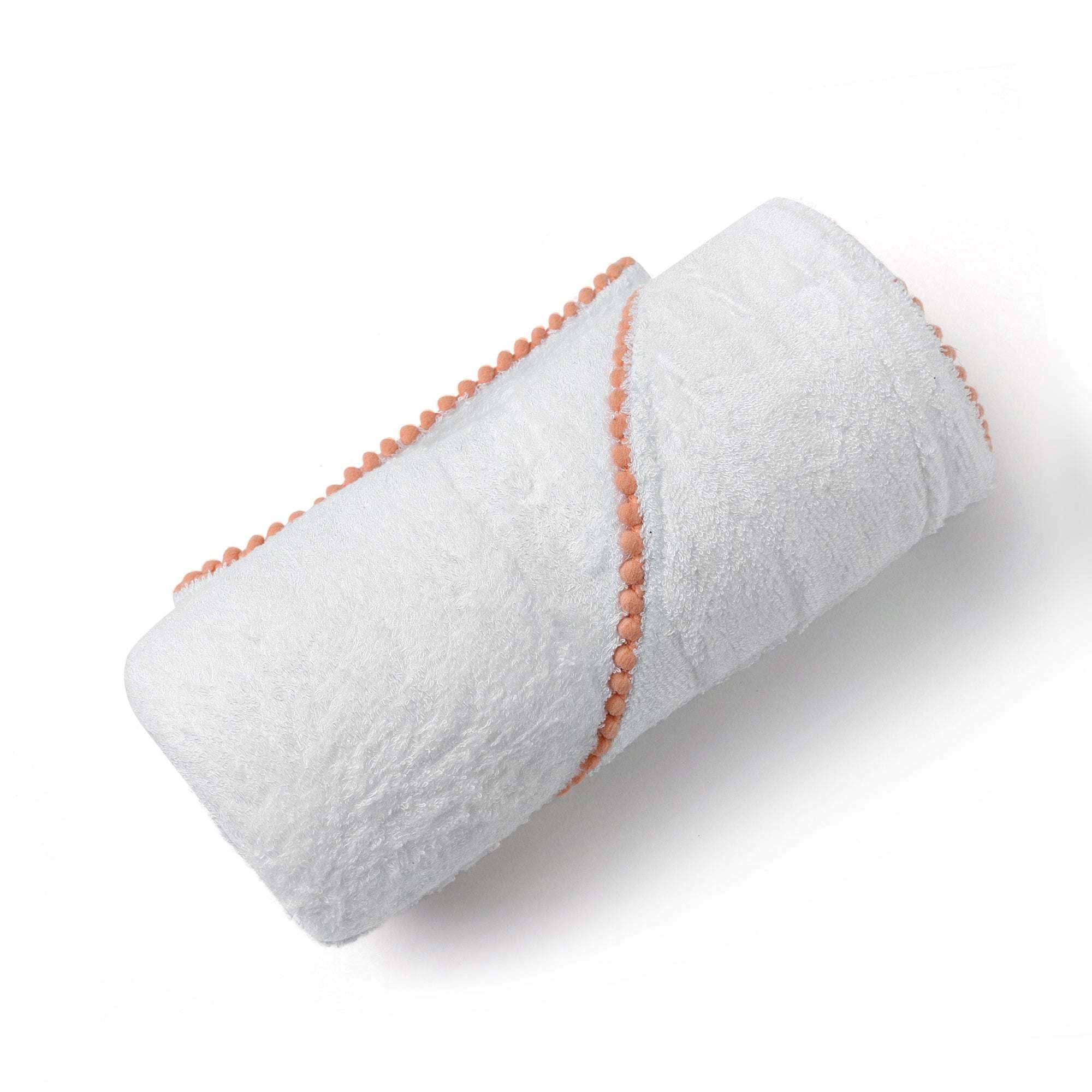 • Bamboo Towel with accented pom pom trim, incredibly soft, silky and stretchy